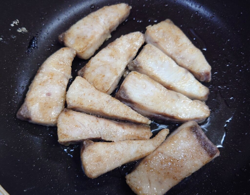 ひと口サイズに切ったシイラは